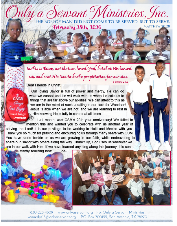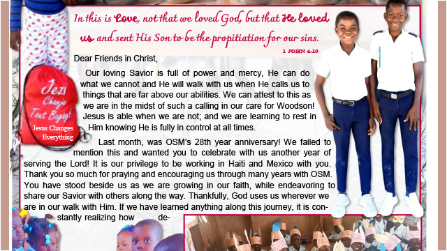 Last month, was OSM’s 28th year anniversary! We failed to mention this and wanted you to celebrate with us another year of serving the Lord! It is our privilege to be working in Haiti and Mexico with you. Thank you so much for praying and encouraging us through many years with OSM. You have stood beside us as we are growing in our faith, while endeavoring to share our Savior with others along the way. Thankfully, God uses us wherever we are in our walk with Him. If we have learned anything along this journey, it is constantly realizing how dependent we are on Jesus Christ alone!